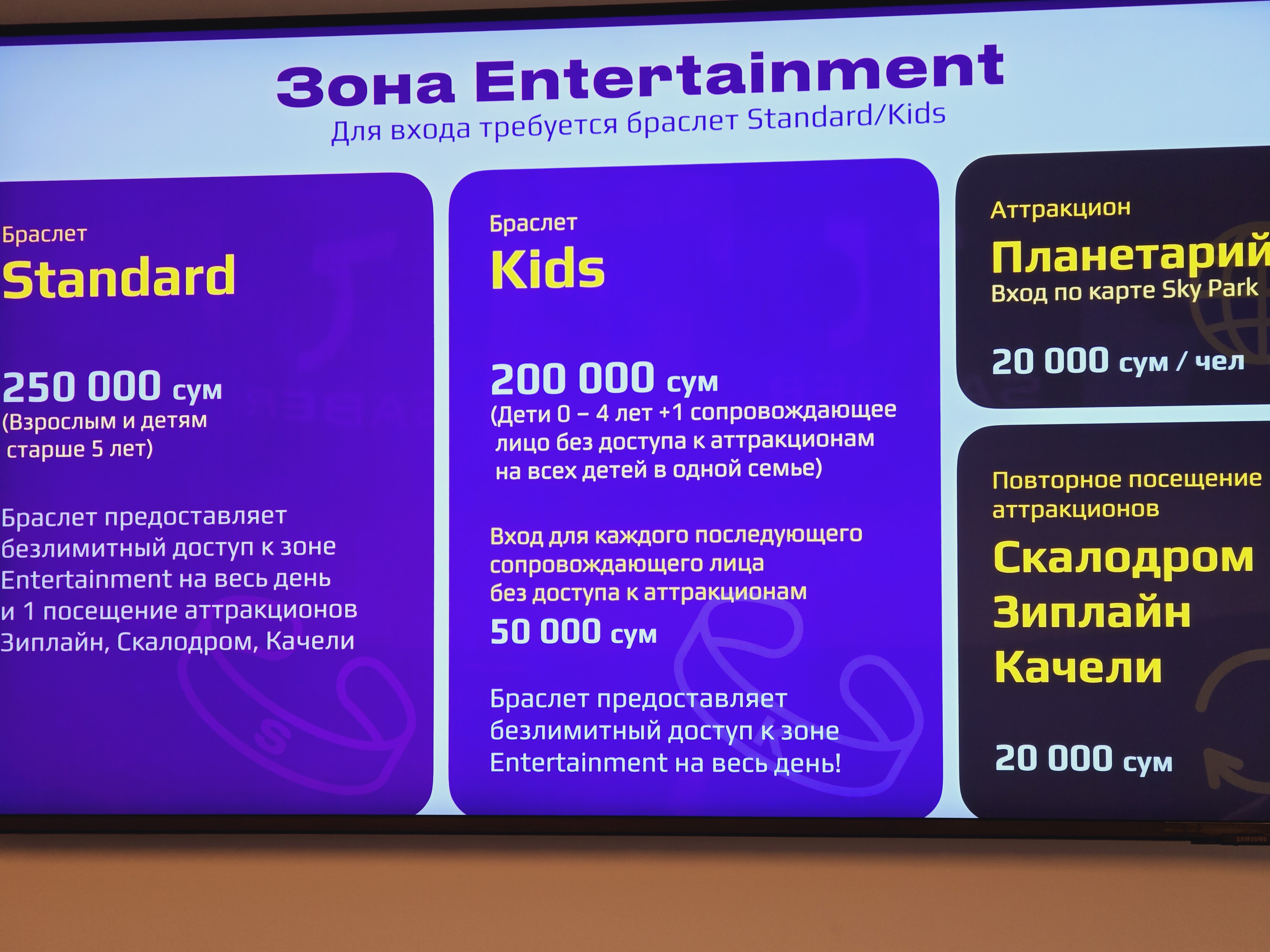 각 층별로 고급 차량들을 전시해 놓고 있는데, 우즈베키스탄 현지인들에게서 사진 명소로 인기를 끌고 있는거 같았습니다. 주로 즐길거리는 맨 위층인 4층에 위치해 있는데, 우주 콘셉트의 실내 놀이공원으로 우리나라 스타필드에 가면 있는 그런 놀이시설과 비슷한 콘셉트인 듯싶었습니다. 가격은 어린이의 경우 20만 숨으로 적은 금액은 아닌데도 불구하고, 이런 고퀄의 실내놀이시설이 없다 보니 우즈베키스탄 현지인들로 북적거렸습니다. 그 옆에는 극장도 있는데 대부분 현지어 더빙의 영화가 상영되고 있지만, 가끔 영어 더빙의 영화도 있으니 시간 되실 때 저렴한 가격에 영화를 보러 오셔도 좋을 것 같습니다.