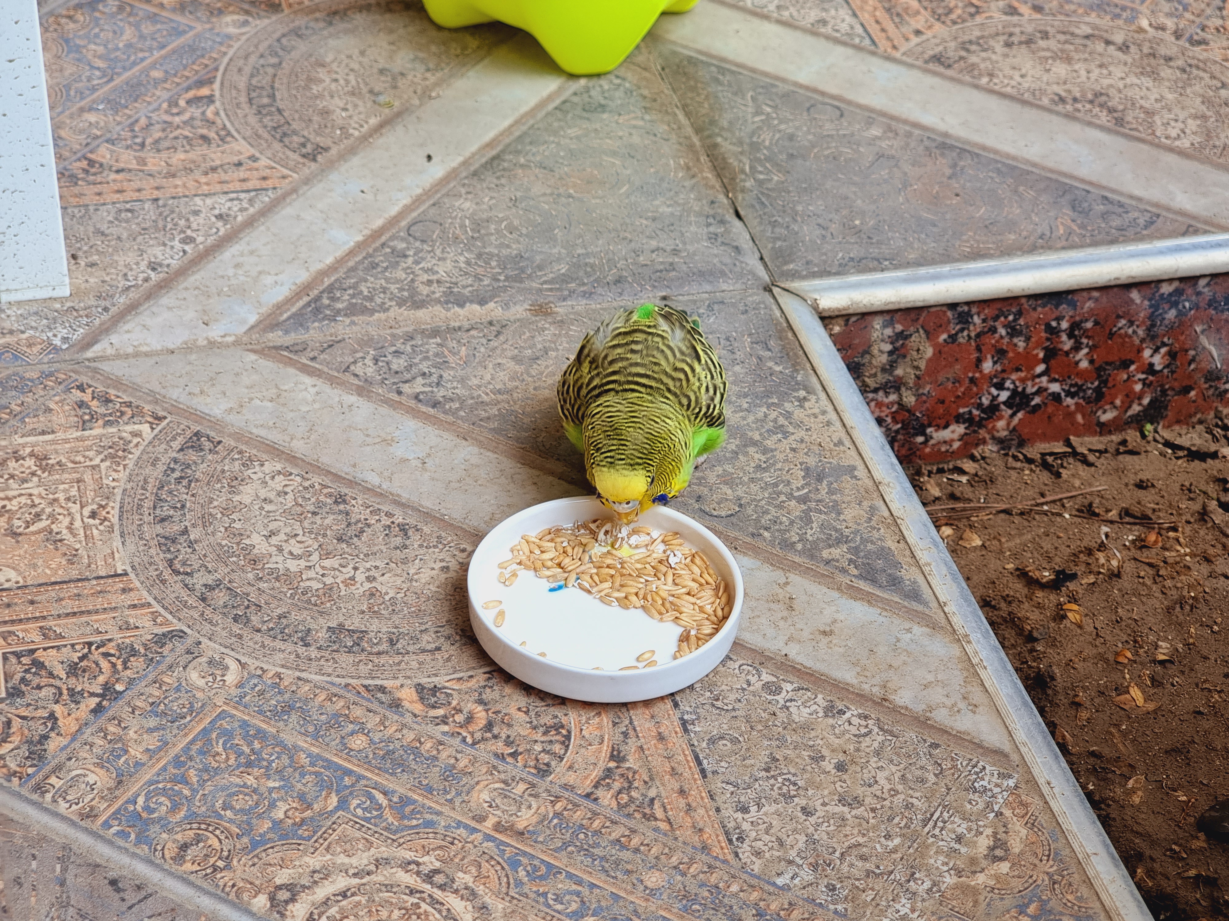 지금 새를 발견한지는 3일째인데 언제부터 집 마당에 있었는지, 앵무가 야생에서 온 새인 건지 아니면 사람 손을 탄 새인지 분간이 잘 안 갑니다.