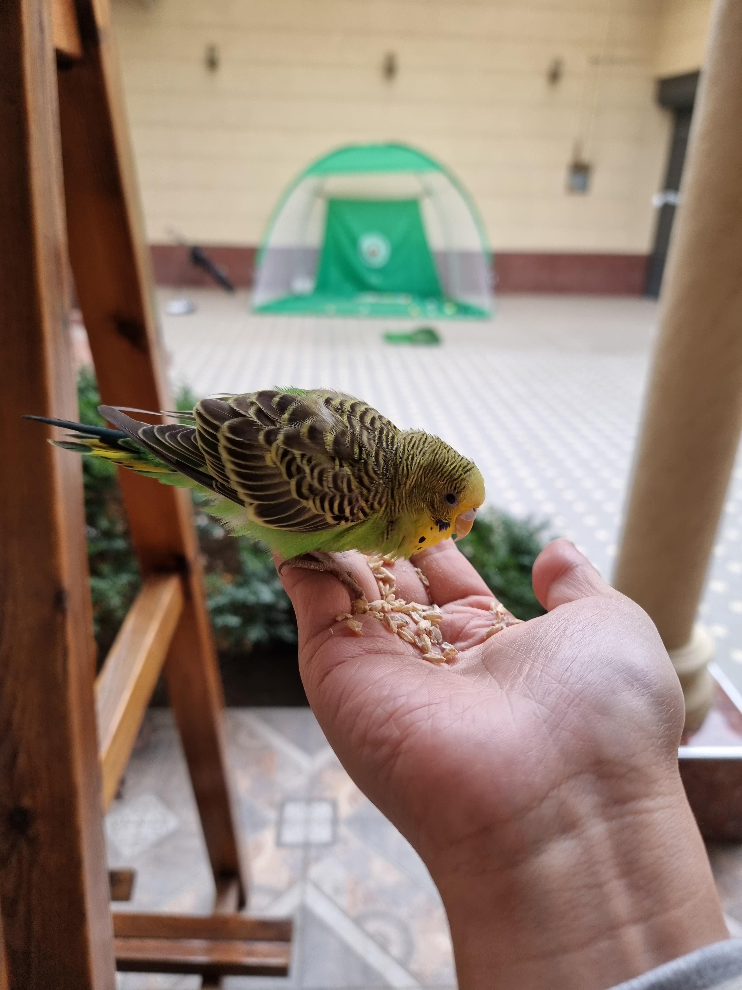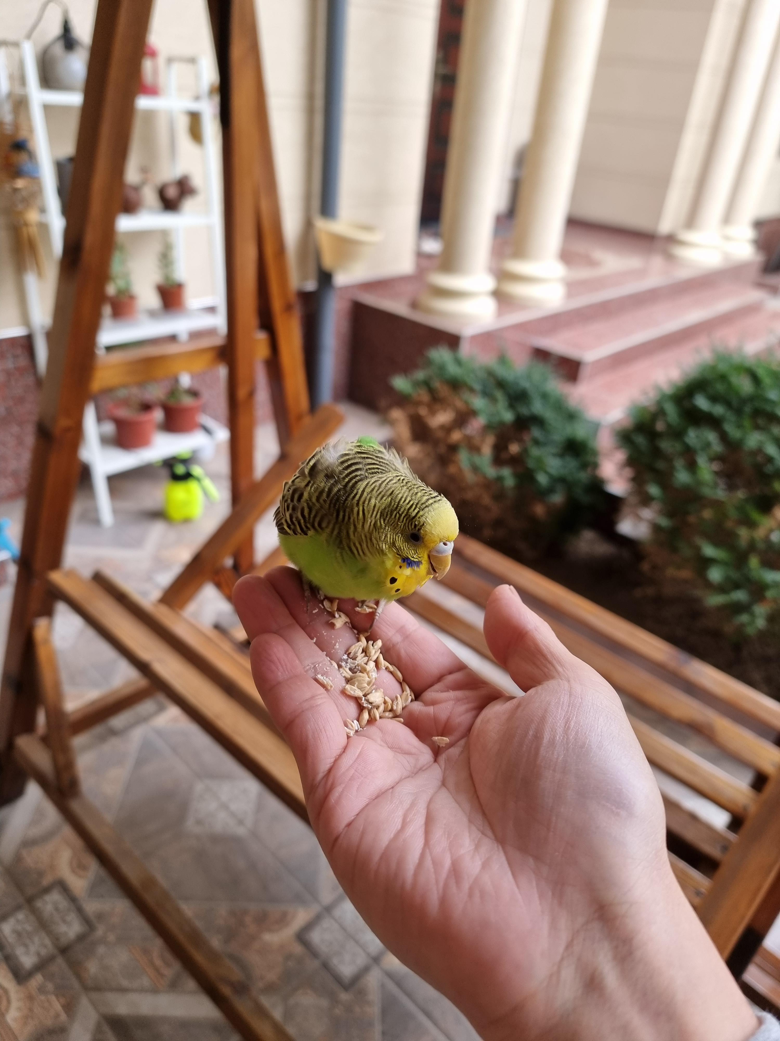 처음에는 저를 경계하다가 손에 먹이를 놓고 조금 먹이다 보니 조금씩 경계를 풀더니 이제 제가 다가가서 만져도 피하지도 않고 한 번은 마당에서 운동하고 있는데 어느 순간 제 팔로 짧게 날아와서 붙기도 하고 3일 만에 제법 친해졌습니다.