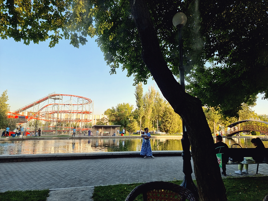 공원에는 성인이 즐길 수 있는 놀이기구도 있었는데요. 저희는 직접 탑승하지는 않았지만 레일 사이로 빠르게 돌아다니는 열차는 꾀나 스릴 있어 보였습니다. 우즈벡 연인들의 필수 데이트 코스가 아닌가 싶은데요. 그냥 멀리서 지켜보는 것만으로도 너무 재미있더라고요. 소리 지르는 반응이 재미있었습니다.