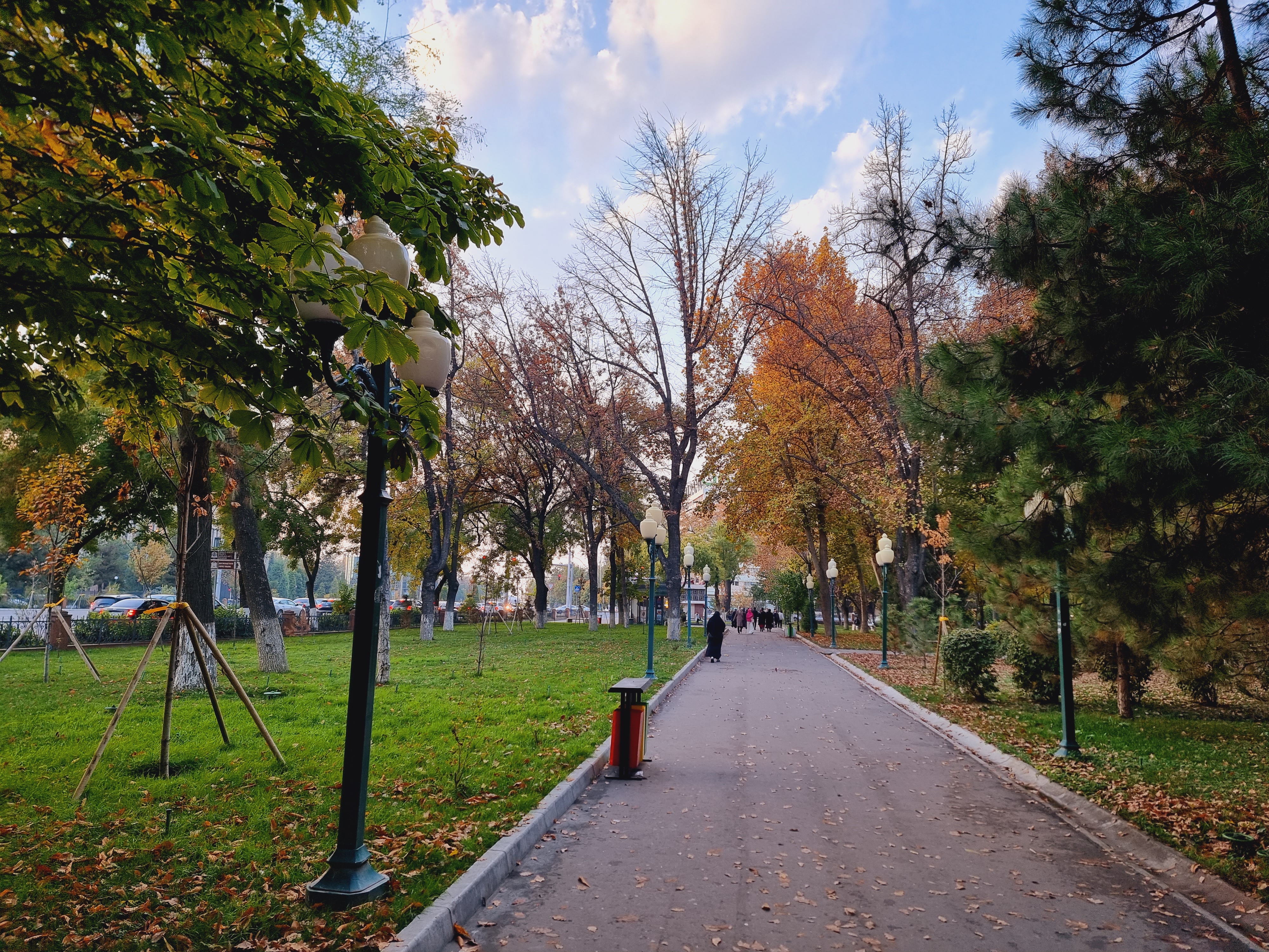 그만큼 가을 길은 분위기가 좋다 말할 수 있겠습니다. 길 옆으로 세워진 가로등도 뭔가 구 소련시대에 만들어진 것인지 고풍스러운 느낌도 있고요. 아내는 우즈베키스탄의 가로등을 특히나 맘에 들어하더라고요.
