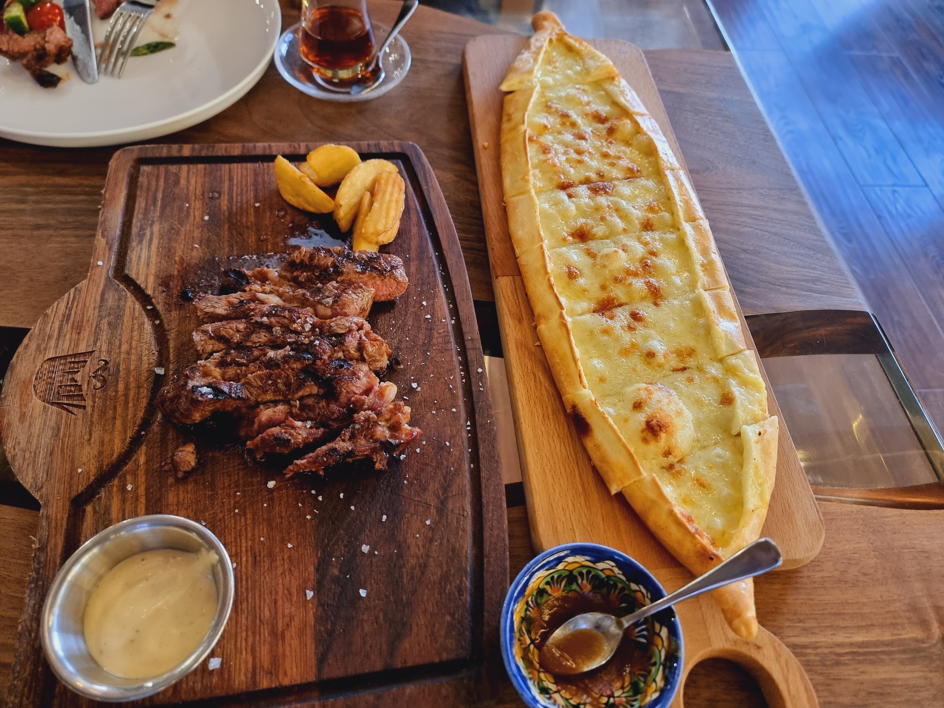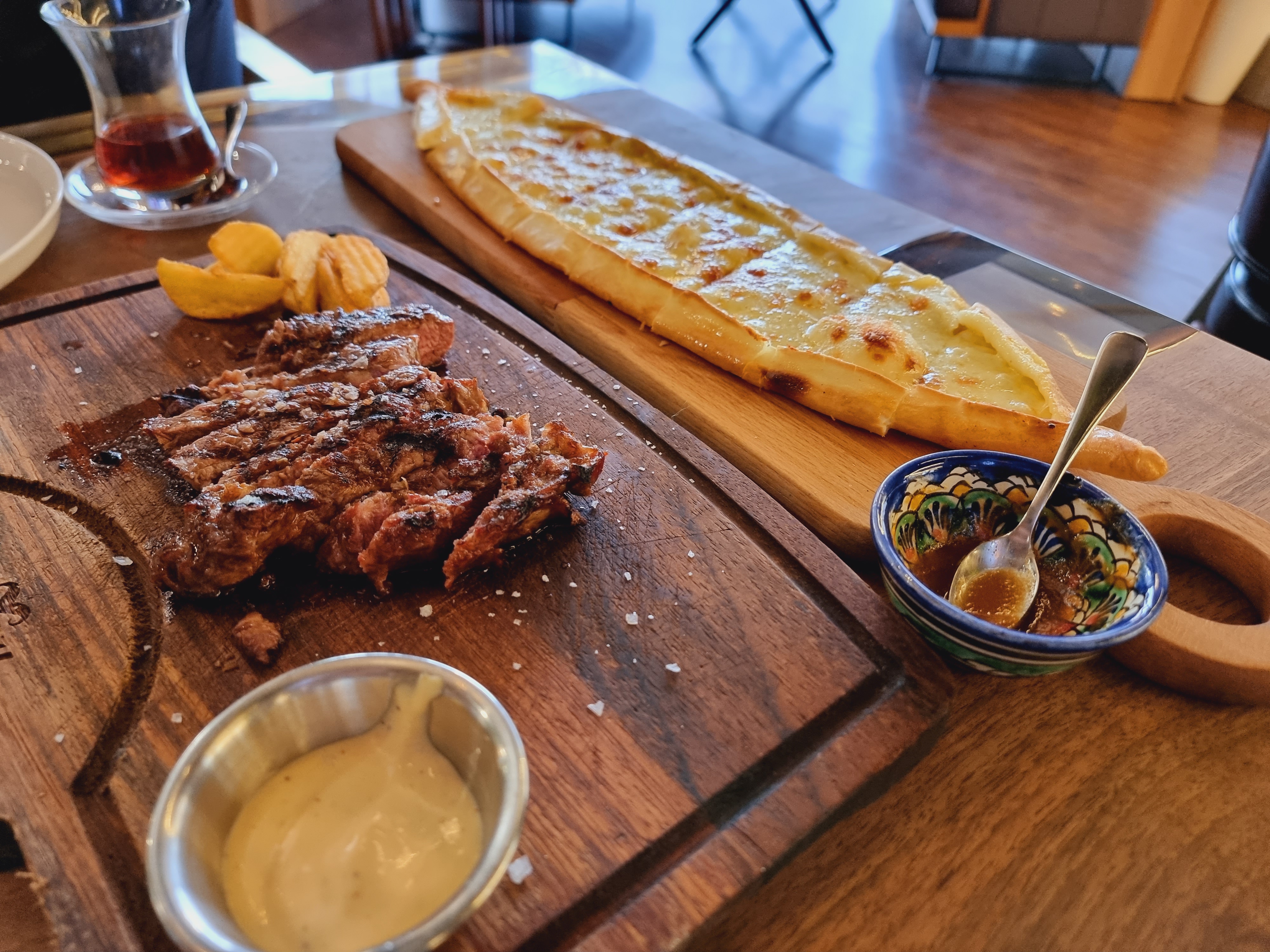 스테이크는 직원이 직접썰어주는 섬세한 서비스도 있었고요. 양도 적당했고 아주아주 맛있었습니다. 터키식 피자인 피데도 다른 곳에서 먹는 것과는 차원이 다른 고급진 맛도 있었고 아주 만족스러웠습니다.