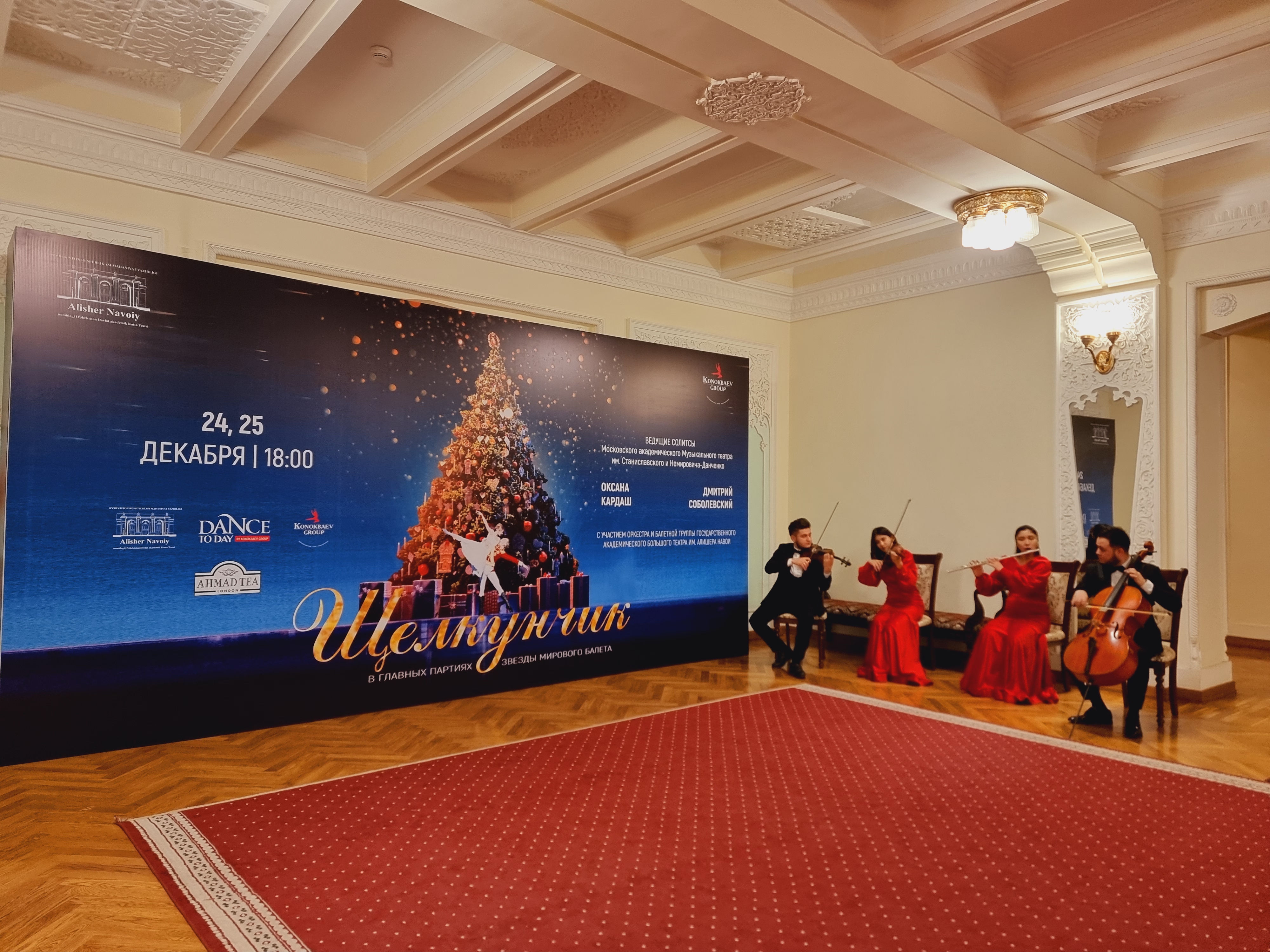 타슈켄트의 대표적인 문화공연장인 알리셔나보이 극장에서는 연말과 연초를 맞아 다양한 공연이 펼쳐지는데요. 저희는 크리스마스이브를 맞아 당일 딱 어울리는 호두까기 인형 발레공연을 보고 왔습니다.