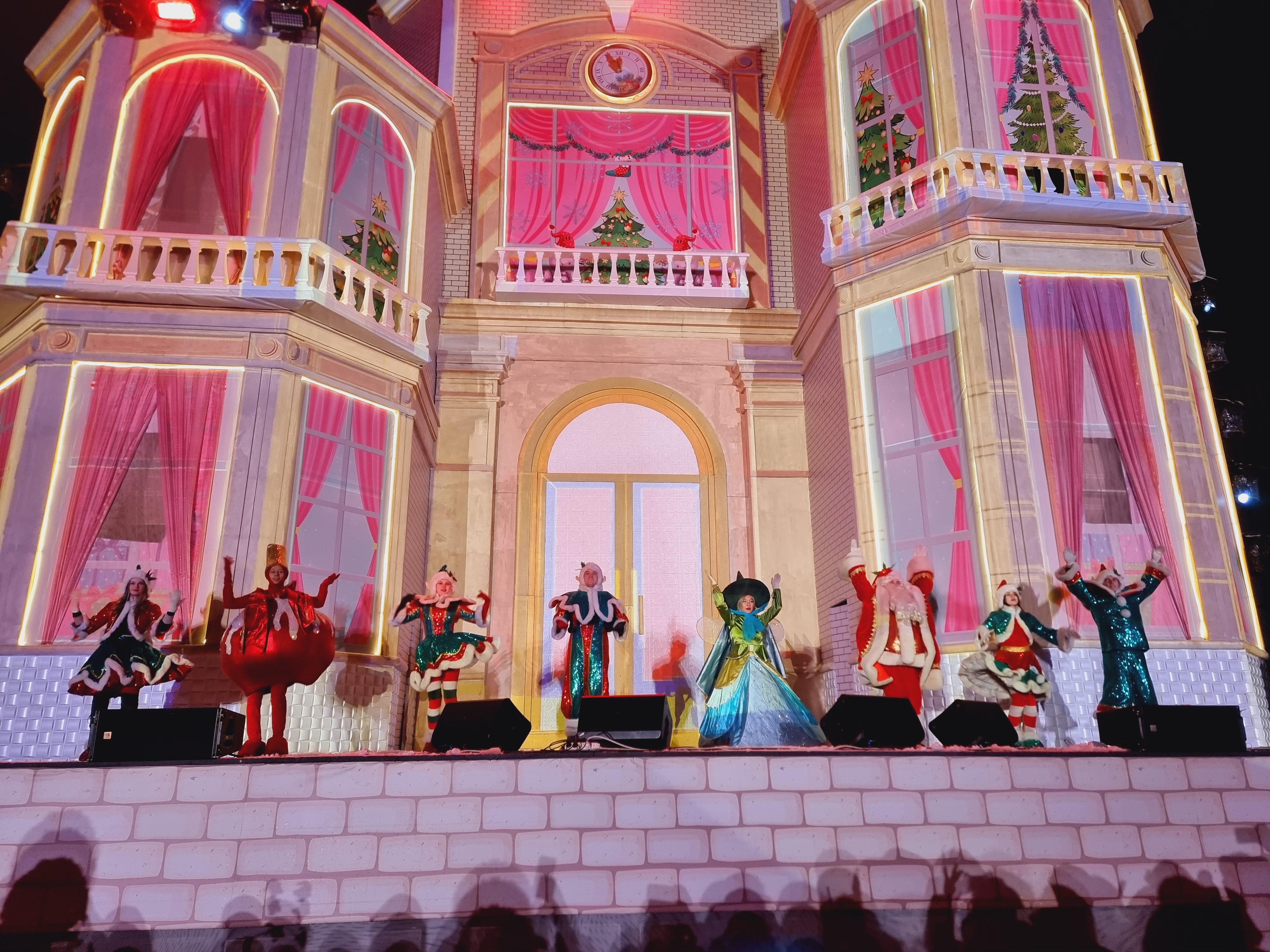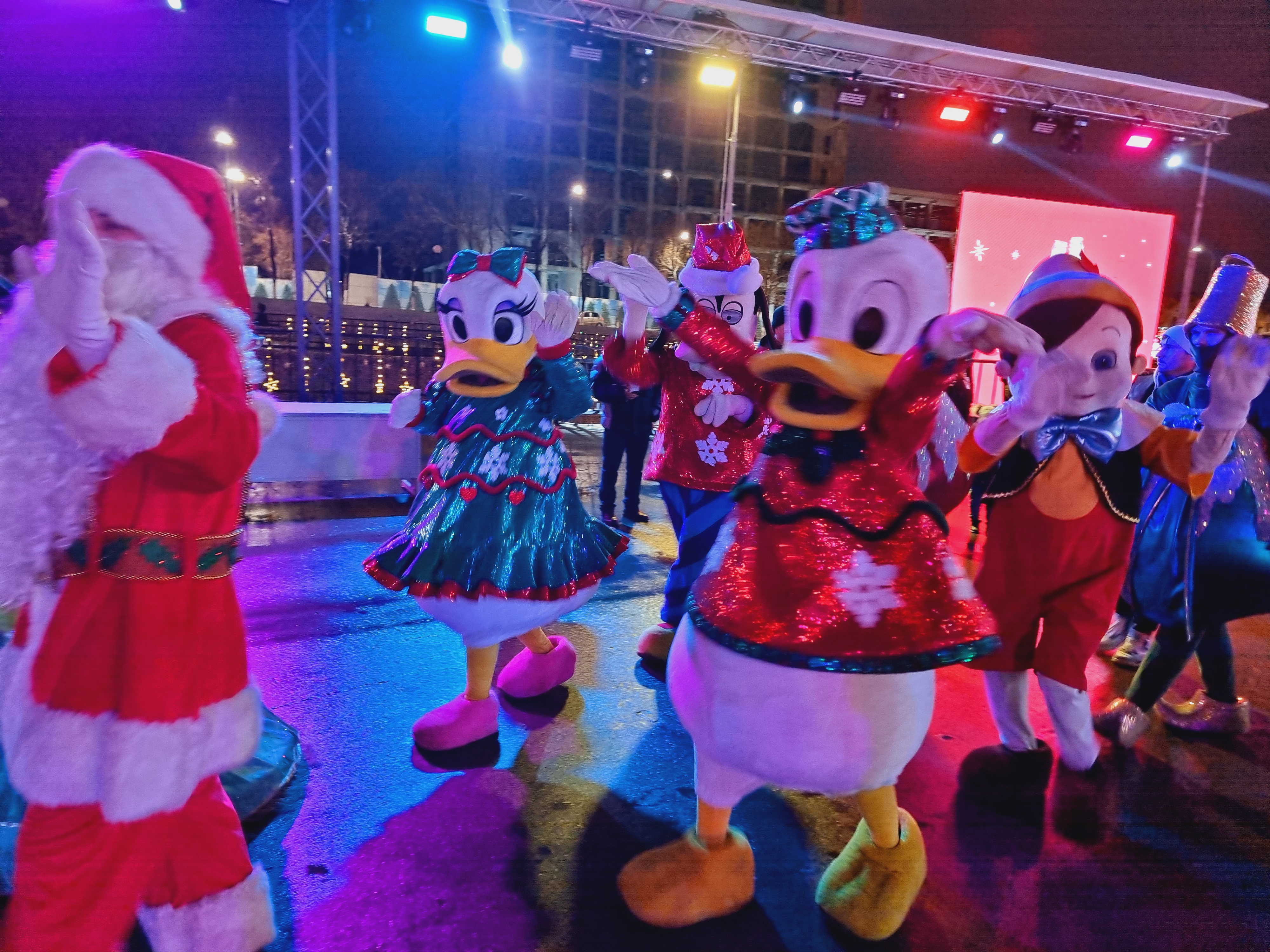 공연무대는 간이로 몇주전부처 설치를 했는데. 조명을 함께 하니 퀄리티가 꾀나 높아서 놀랐습니다. 진짜 크리스마스 분위기 제대로 느낄 수 있었고, 저 무대뒤로 불꽃놀이도 쏘아 올리는데 너무 멋졌습니다.
