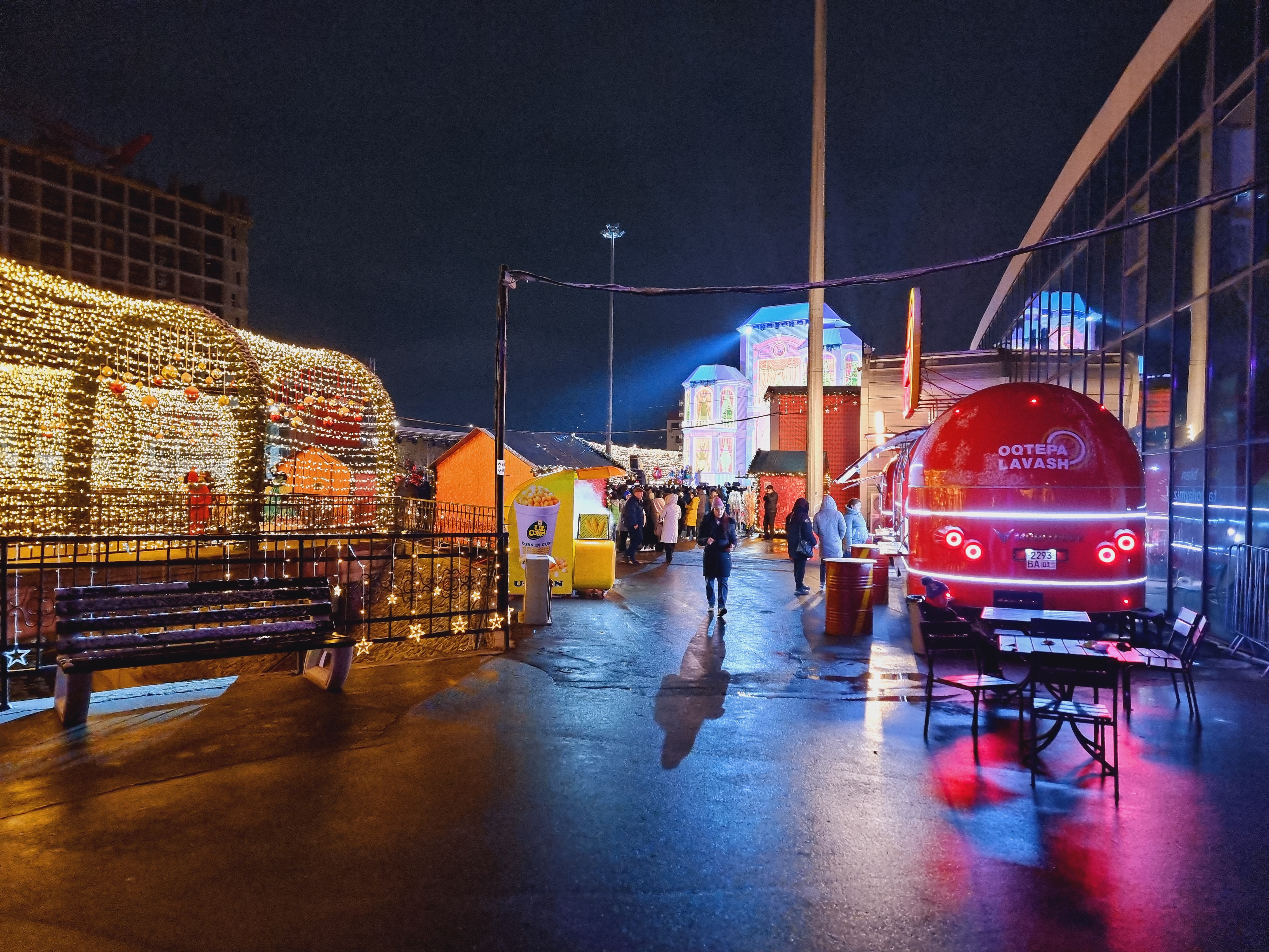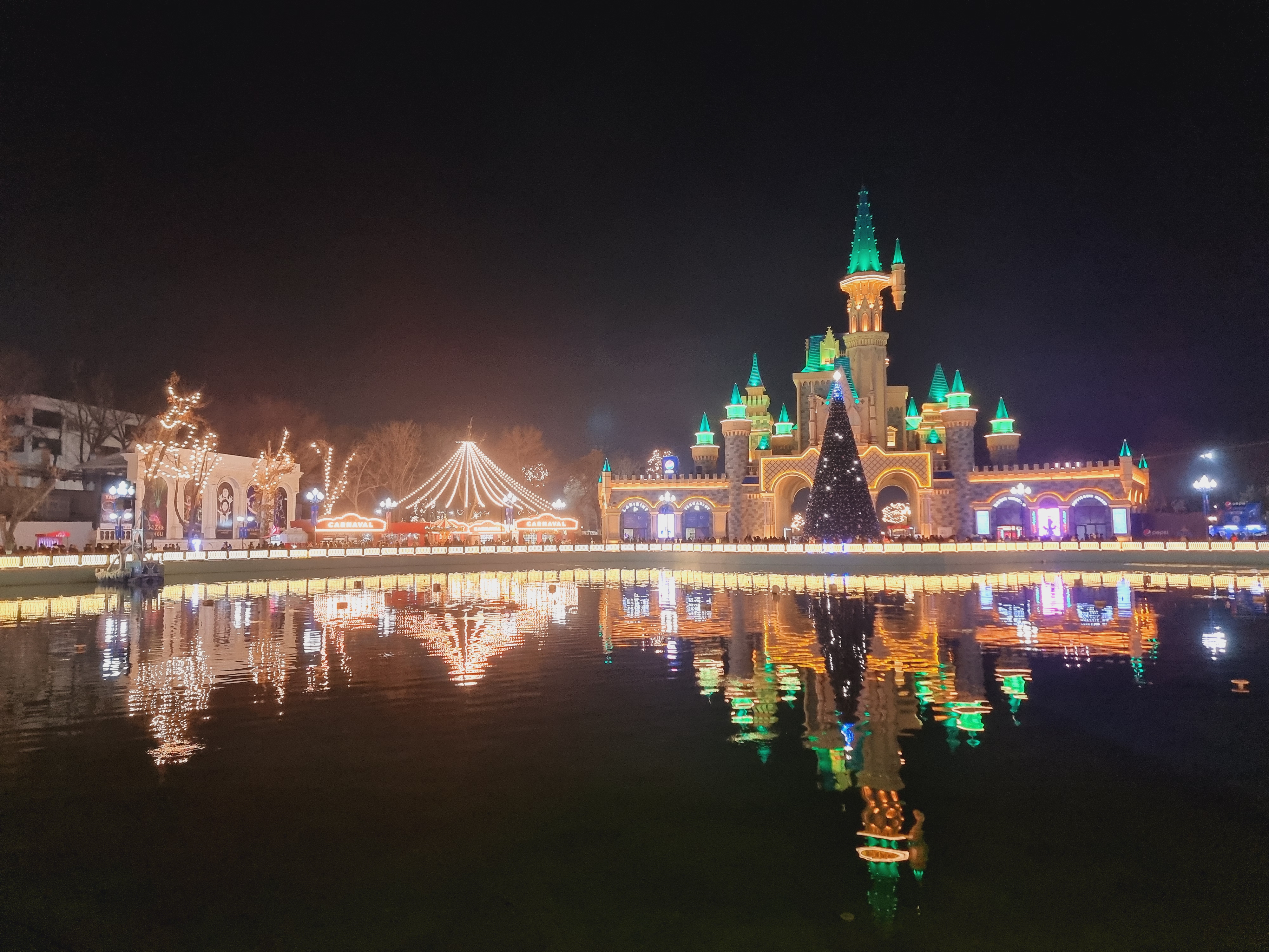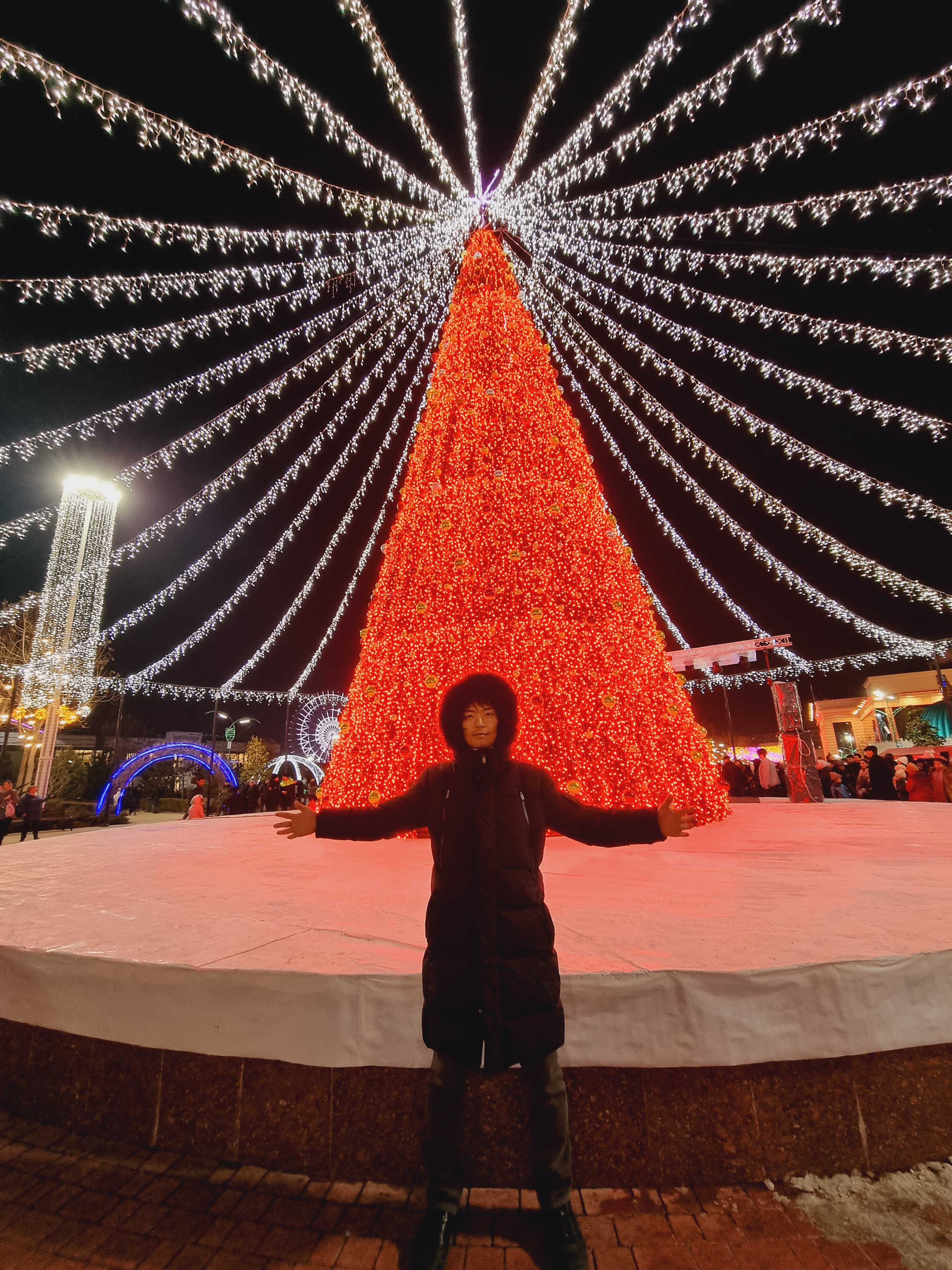 센트럴 파크 타슈켄트도 야경이 아름답기로 소문난 장소입니다. 평소에도 제가 가장 좋아라 하는 공원이기도 한데요. 내부에 작은 서커스장도 마련되어 있고 평소에는 보이지 않던 길거리 음식을 파는 가판대도 화려한 조명과 함께 설치되어 있어서 연말 연초 분위기를 느끼기 좋았습니다.