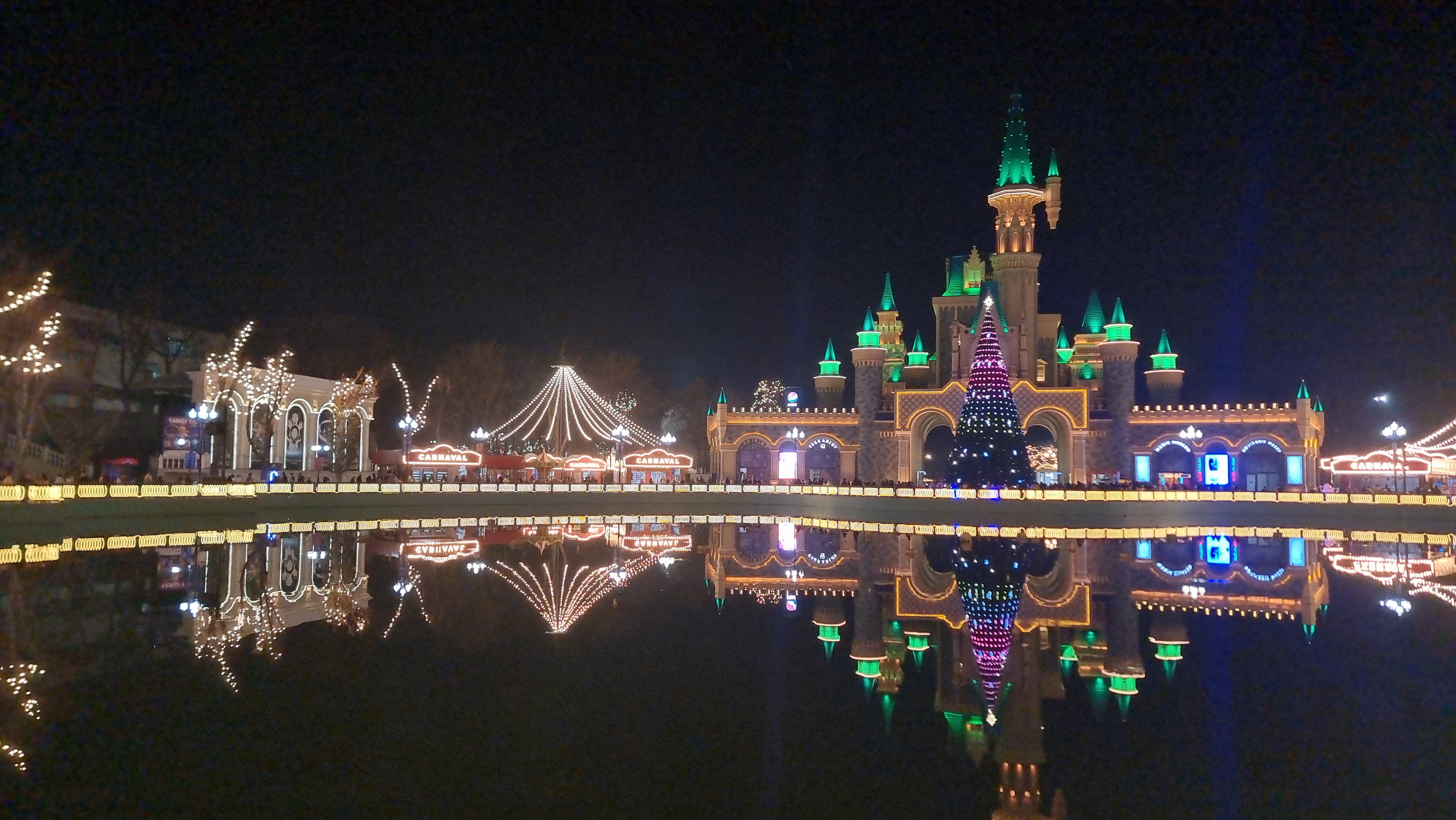 특히나, 작년부터 오랜기간 개방하지 않던 호수공원이 개방되면서 그 규모가 훨씬 커지기도 했고, 이곳에서 즐길 수 있는 액티비티들도 더 다양해졌다. 매직시티가 한 단계 업그레이드되었다고 할 수 있는데, 동화 속 건물과 같은 매직시티 건물이 반영된 호수의 모습은 야경의 백미이기도 하다.