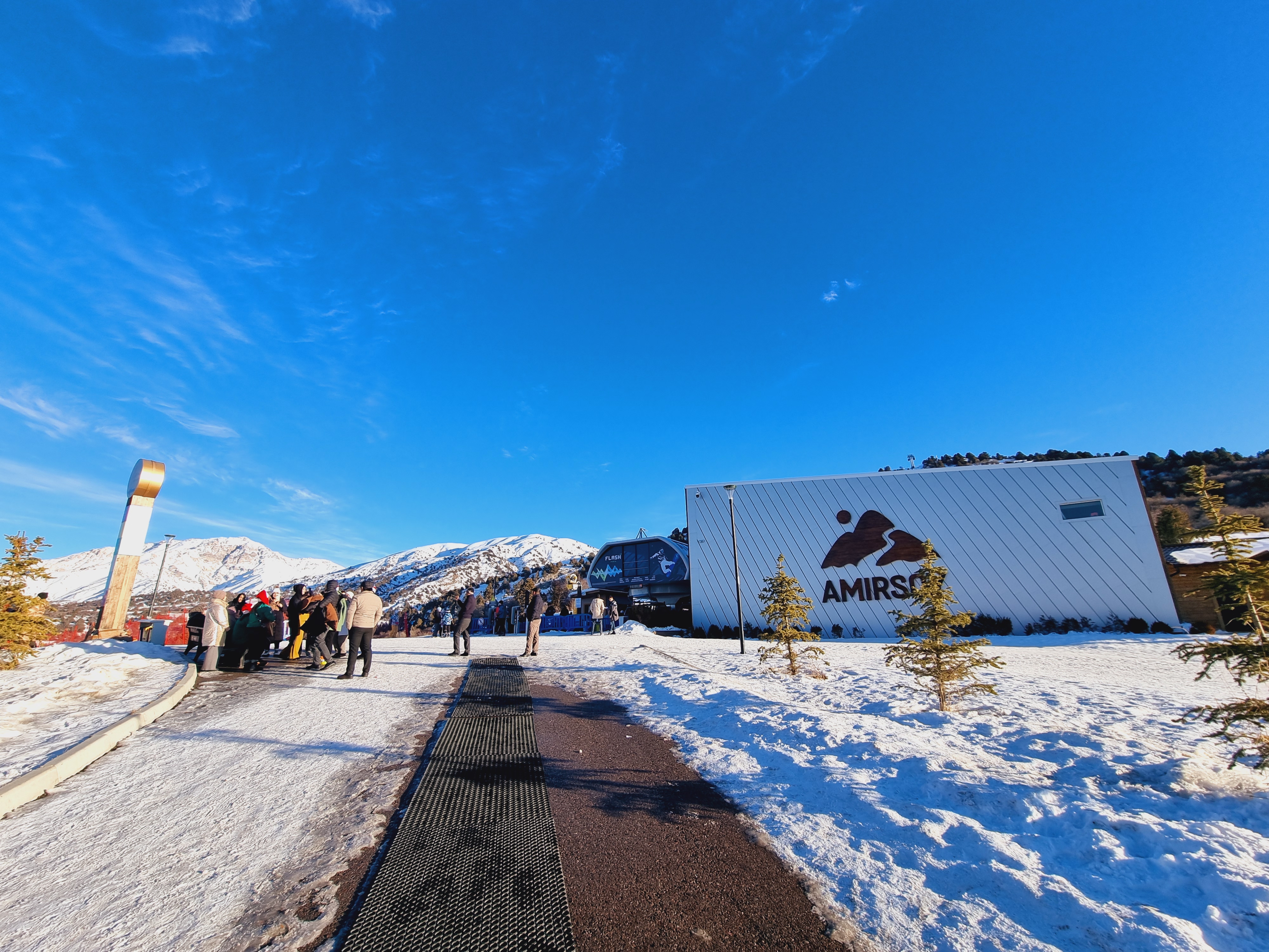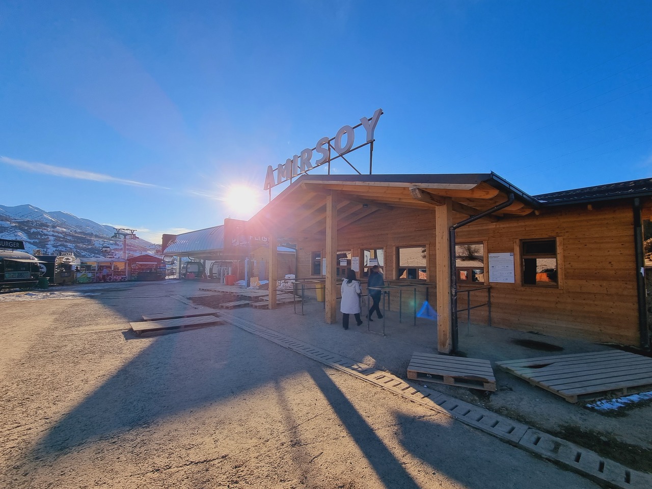 케이블카를 타고 어느 중간지점에 다다르면 사람들이 조금 더 북적거리고 스키장 샾들이 있는 모습을 볼 수 있는데요. 이곳이 아미르소이 리조트의 메인입니다. 이곳에서 케이블카를 갈아타고 정상으로 가시면 되는데요. 리조트로 조성되어 있다 보니 음식점들도 여러 개가 있고 이곳에서 식사를 하시거나 조금 쉬었다 가셔도 좋습니다. 단 케이블카 운행시간은 스키이용객이 아닌 관광객의 경우 오후 4시까지만 탈 수 있어서 시간확인을 잘하셔야 합니다.