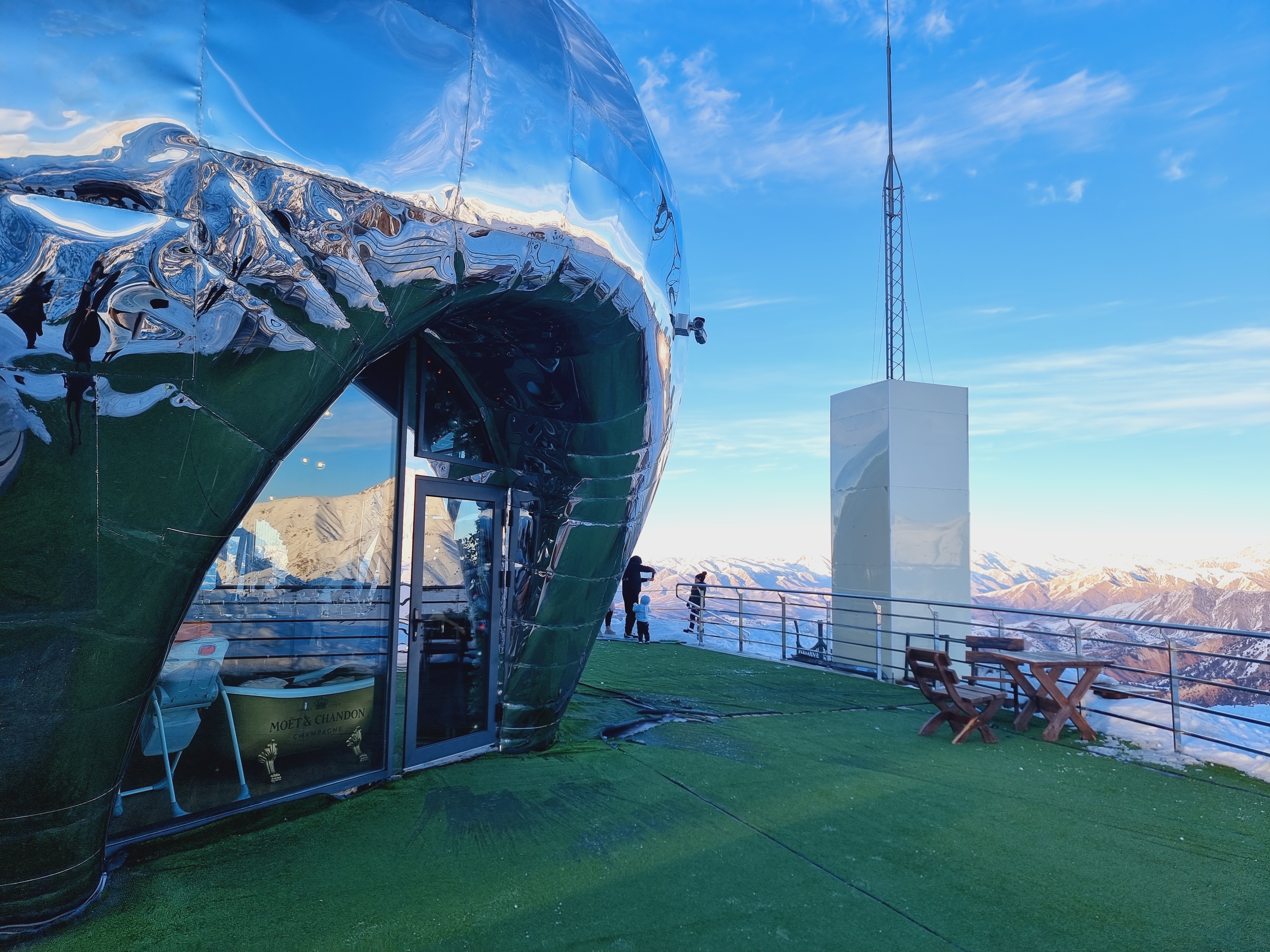 이 건물이 주변의 설산들을 반영하고 있어서 더 멋지게 보이는데요. 이곳은 2290 Restaurant bar terrace라고 불리는 레스토랑입니다. 침간산 정상높이가 2290m라서 이름이 이렇게 붙여졌다고 하네요.