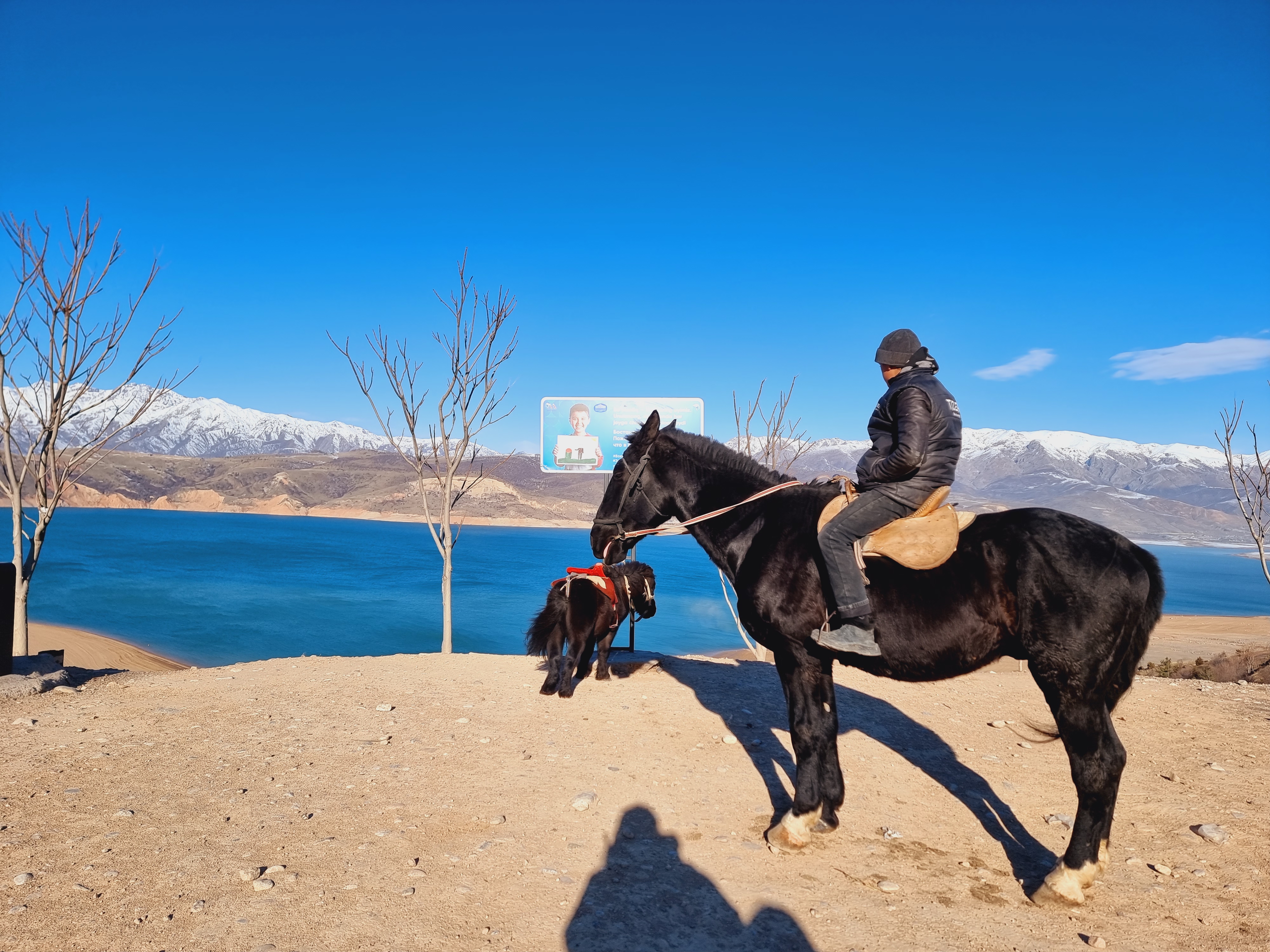 여름에는 차르박호수에서 유람선을 타거나 페러글라이딩 등 다양한 레저활동을 즐긴다고 하는데, 겨울이라 그런지 레저나 수영을 즐기는 사람은 보이지 않았고 관광객을 상대로 말을 타고 사진 찍어주는 장사를 하는 현지인만 있었습니다.