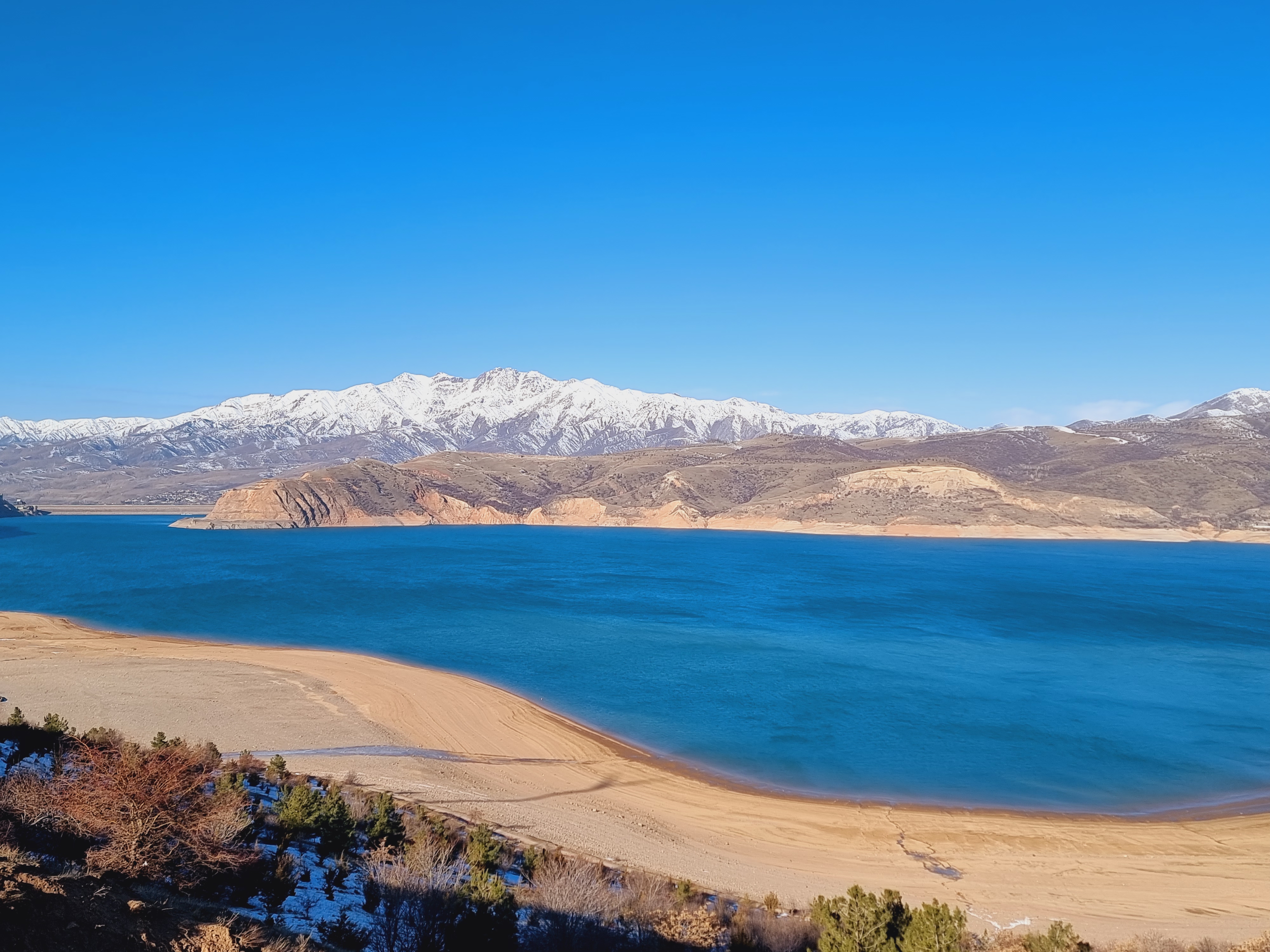 침간산에 왔으면 구경할 게 하나가 더 있습니다. 차르박 호수라는 인공호수인데요. 타슈켄트에 상수를 제공하고 전기를 생산하는 다목적 댐으로 건설이 되었다고 합니다. 그 크기가 굉장해서 얼핏 보면 정말 커다란 자연호수처럼 느껴지는데요.