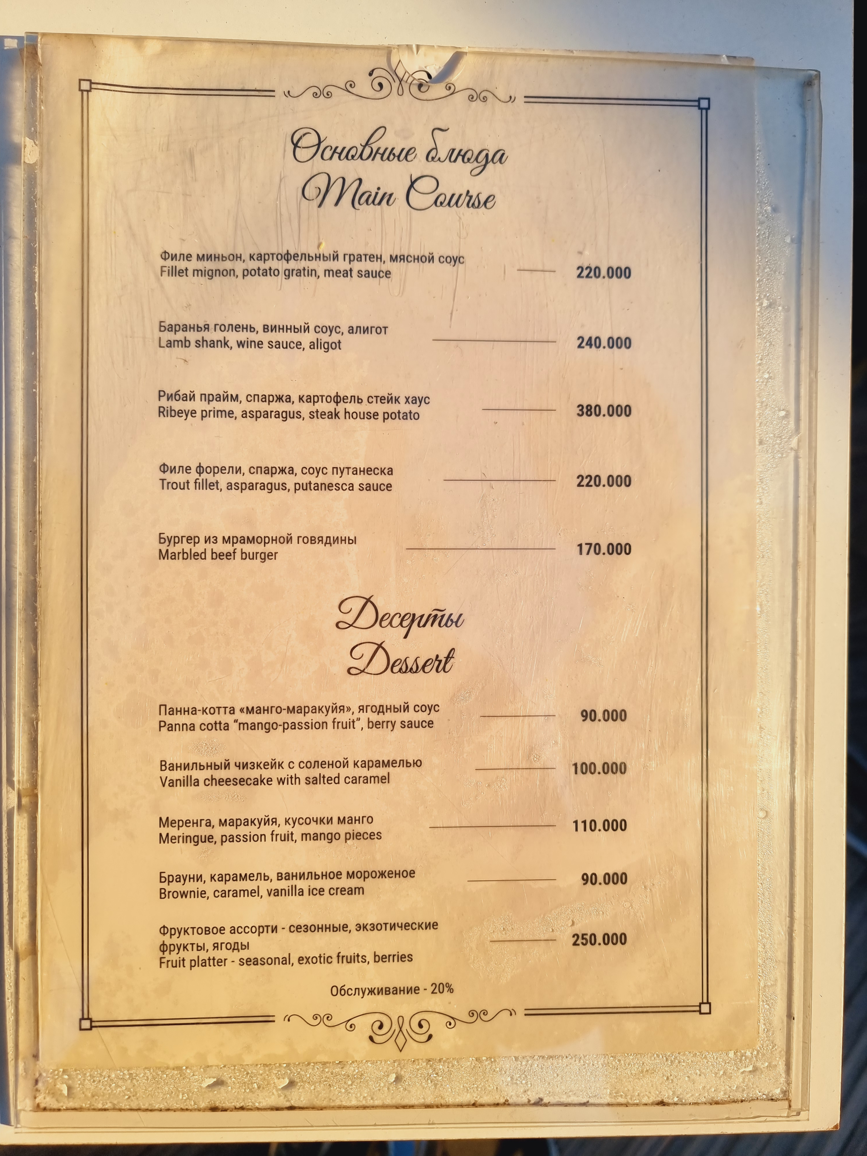 가격대는 식사가 약 25만 숨정도 되는데 택스까지 생각한다면 인당 4~5만 원 정도 잡아야 하지 않을까 싶습니다. 현지 물가치고는 굉장히 비싼 편이긴 하나 언제 특별한 날에 한번 방문하는 것도 좋을 것 같아요. 한데 여기에 케이블카 비용은 포함되어 있지 않으니, 이것까지 생각한다면 정상에서 한번 고급스럽게 식사하는데 확실히 비용이 만만찮을 거 같긴 합니다.
