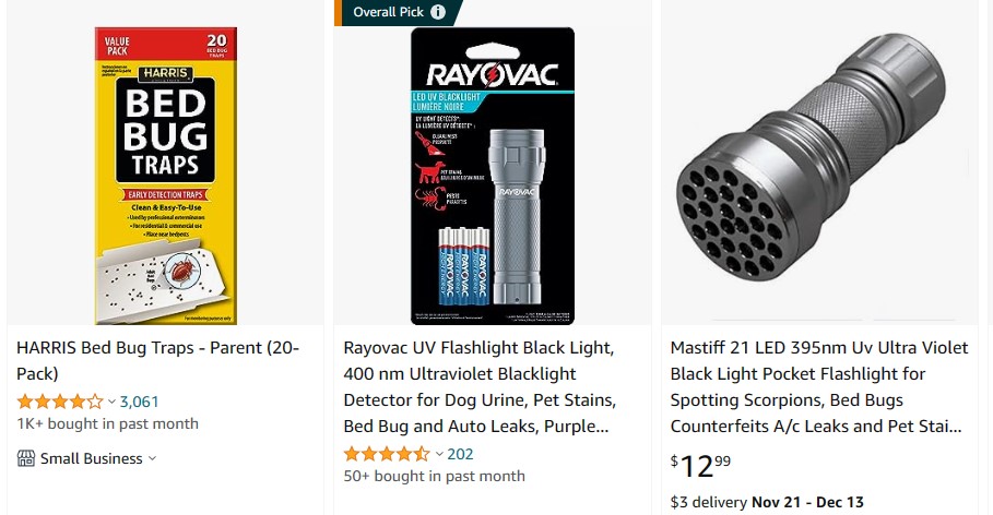 그리고, 해외에서는 조금 더 다양한 제품들을 판매하고 있었는데요. 트랩(trap)이나 자외선 탐색기 등도 빈대를 예방하는데 꾀 도움이 될 것 같았습니다. 특히나 자외선 탐색 라이트는 여행시 휴대용으로도 괜찮고 잠자리에 들기 전 빈대 흔적을 찾기에도 유용할 것 같았습니다. 침대의 위생상태를 확인하는 것은 덤이고요.